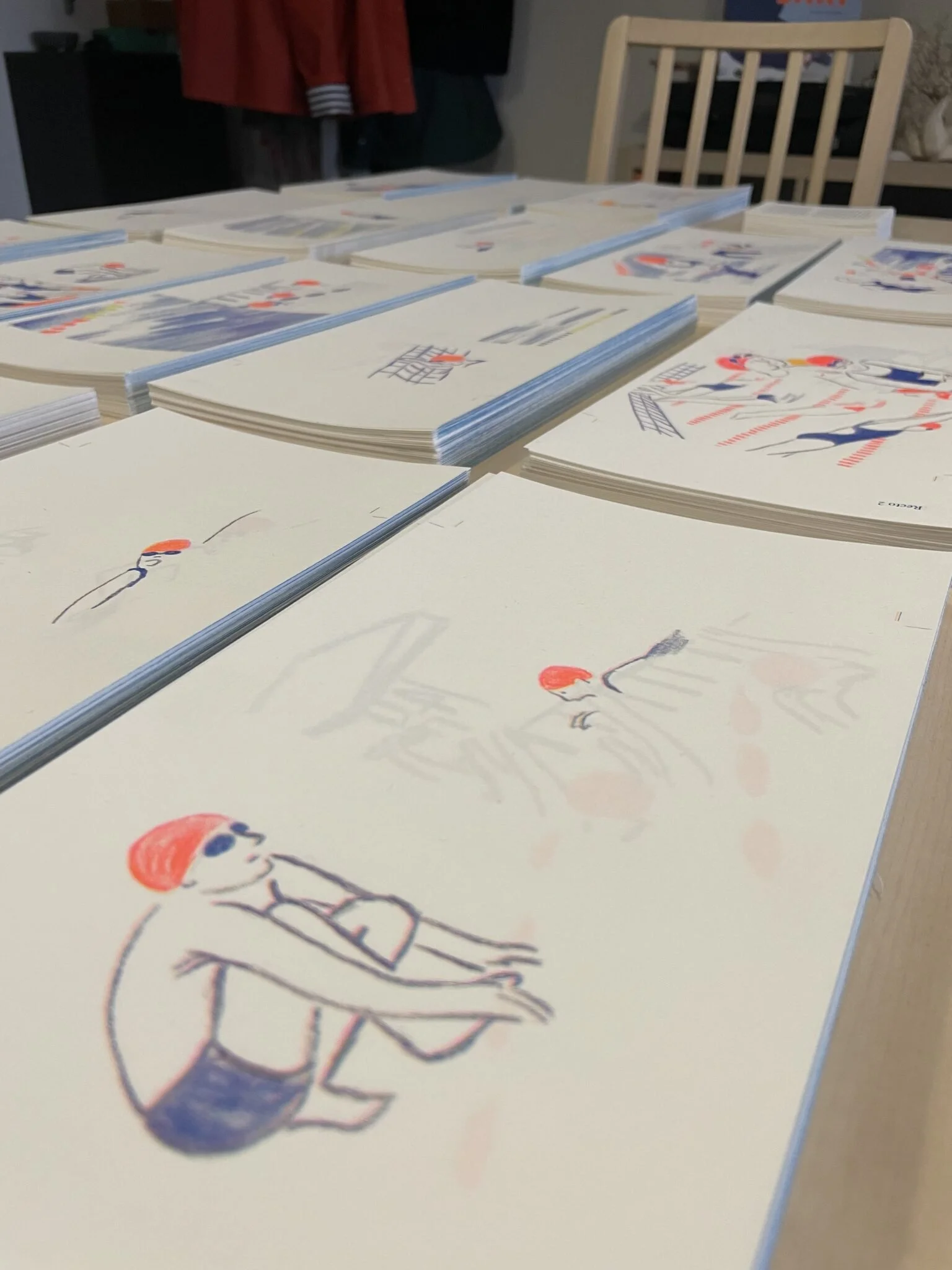 MNS est un livre illustré qui capture l’atmosphère des piscines, entre attente, mouvements et reflets d’eau. Inspiré par mes années de natation en club et mon expérience comme surveillante de baignade, ce projet revisite, à travers le dessin, les gestes et les moments suspendus qui rythment cet univers.